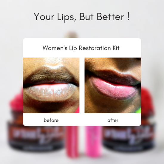 Our Women’s Lip Restoration Kit combines pure, undiluted ingredients such as AHA/BHA to gently remove dark buildup, bearberry extract to brighten uneven tone, meadowfoam seed oil for deep, lasting hydration, and Ascorbyl Palmitate to support smooth, healthy lips. Every ingredient is gentle enough to use on all skin types and is packed at full strength to deliver visible, lasting results, soft, pink, and revitalized lips with daily use.